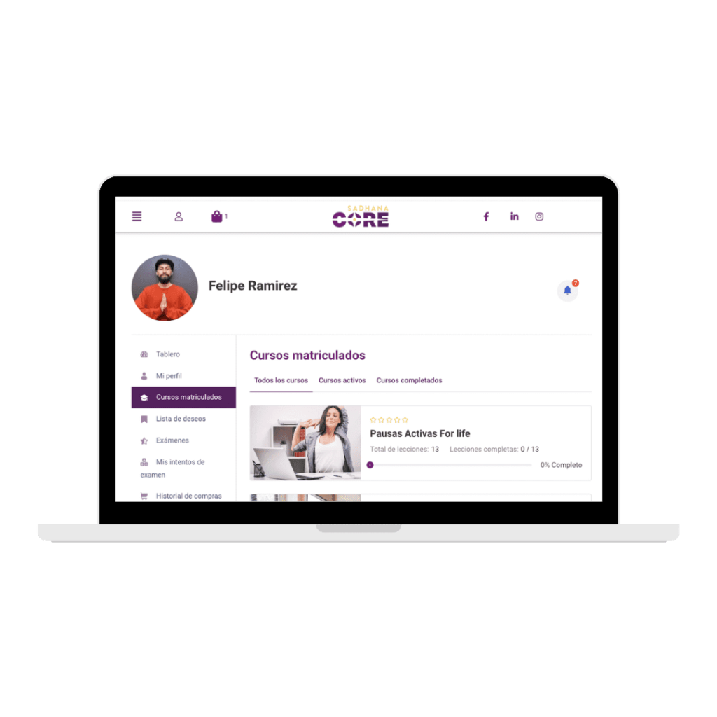 Felicidades! Disfruta de 13 clases de pausas activas en FULL HD para toda la vida. Conéctate donde y cuándo quieras y obtén los beneficios de esta práctica.